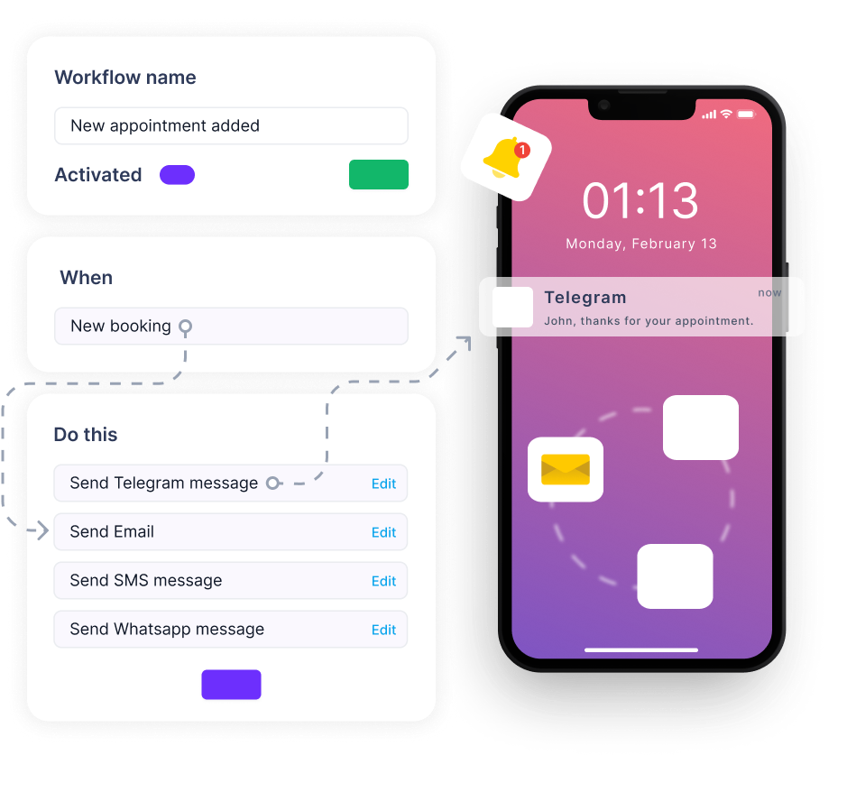 Automate confirmations, reminders, and follow-ups so your business stays organized without constant oversight.