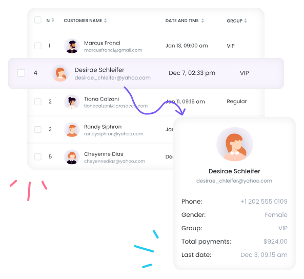 By automating your appointment business via Booknetic, you will collect your customer data as well